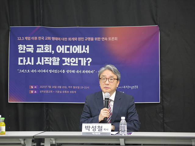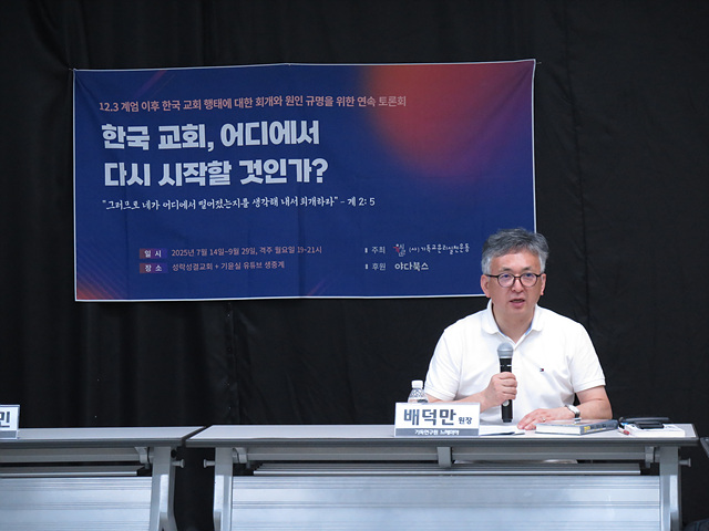 4차 토론회(9/1) 발제를 맡아주신 일원동 교회 권수경 목사님은 한국교회 140년 역사 속에서 드러난 “한국 교회의 우상숭배” 문제를 지적하셨습니다. 독재정권과 결탁하여 성장한 한국교회는 여전히 권력과 재물을 섬기며, 지금은 특정 이념을 우상처럼 섬기는 극우주의의 형태로 나타나고 있습니다. 한국교회의 진정한 회복은 우상숭배를 회개하고, 온전한 복음으로 돌아가는 동시에 한국 신학이 가진 이론의 한계를 극복해야만 가능한 일입니다.