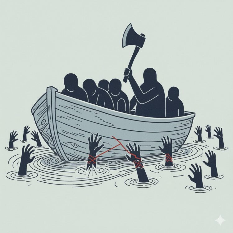 이들은 기후위기에 당면한 상황을 ‘구명정의 윤리’로 이해한다. 예를 들어 400명의 사람이 물에 빠졌는데 50명만 탈 수 있는 구명정이 한 척 있다. 이 구명정에 정원 이상의 사람을 태우면 구명정이 망가져 모두 죽는다. 그렇다면 50명 이외의 사람을 죽도록 내버려두는 것이 ‘더 나은’ 선택이 된다. 오히려 도끼를 들고 구명정에 오르려는 51번째 사람의 손목을 내려치는 것이 ‘선행’이다. 그래서 그들은 멕시코 국경에 장벽을 세우고 지중해에 난민을 수장시킨다.