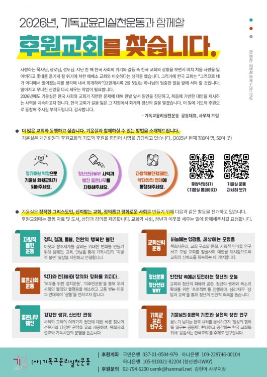 2026 교회후원요청 – 기독교윤리실천운동과 함께 할 후원교회를 찾습니다.