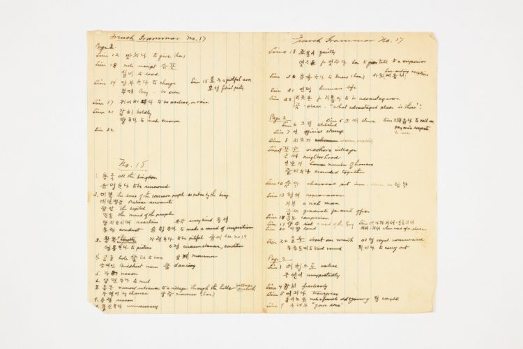 이 사진은 언더우드 선교사 집안에서 나온 한국어 학습 노트로서 기독교대한감리회의 홍승표‧홍이표 목사 형제가 한국기독교역사문화관에 기증한 것입니다. 이 노트는 우리가 잘 아는 언더우드 선교사의 손자인 원일한(Horace G. Underwood Ⅱ) 선교사가 한국에서의 활동을 마치고 떠나면서 집안의 물건을 정리할 때 기증자들에게 주었다고 합니다.