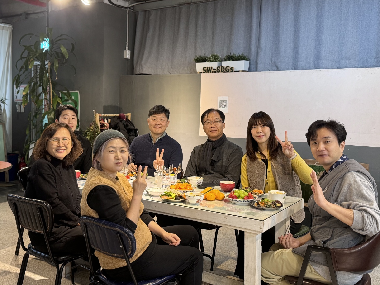 마지막 모임은 12월 6일(토) 수원 ‘가치가게’에서 “채식파티”로 열렸습니다. 일 년간의 활동을 돌아보고 마음을 나누며 감사하는 자리였습니다. 특히 가치가게 대표이신 ‘김희경 선생님’께서 많은 채식 음식을 준비해주셔서 더욱 풍성하고 따뜻하게 나눌 수 있었습니다.