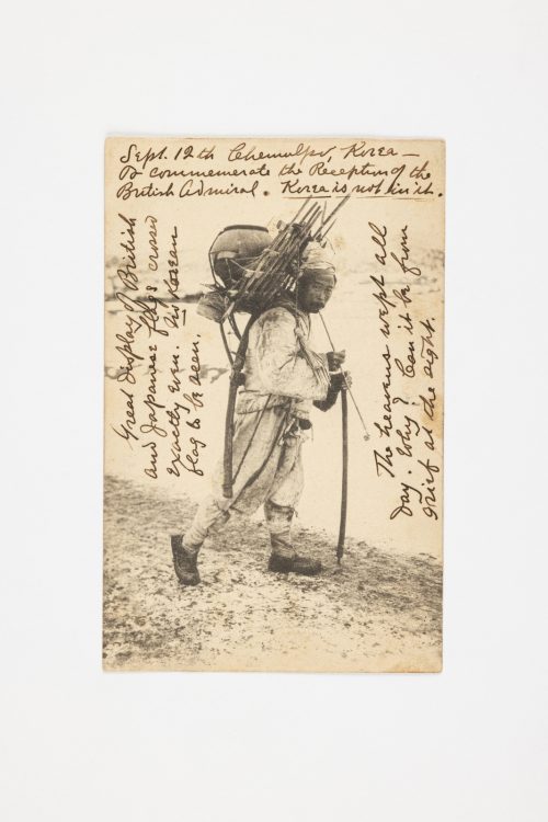 이 엽서는 로제타 홀이 1906년 9월 12일에 제물포(현 인천)에서 쓴 것으로 담배 피우는 지게꾼의 사진을 활용한 엽서입니다. 제가 한국기독교역사문화재단을 대리하여 인터넷 경매에 참여해 다른 경쟁자들을 물리치고 낙찰받은 것입니다. 저의 그 영웅적이었던 눈치 싸움에 대해 이야기해 드릴 기회가 있었으면 좋겠습니다. 저의 경매 실력은 형편없어서 입찰 경쟁이 붙으면 대부분 졌는데 이것은 다행히도 건져 냈습니다. 이 엽서의 내용을 번역하면 이렇습니다.