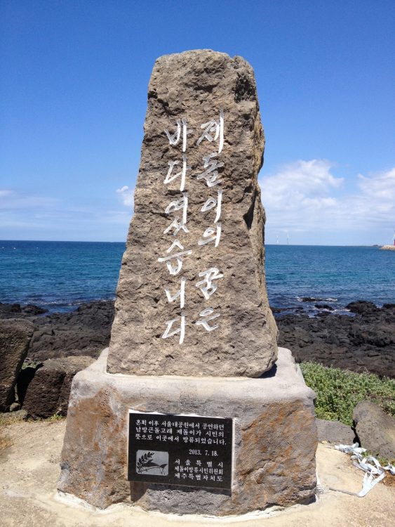 제주도 김녕항에 세워 진 돌고래 방류 기념비 ⓒ김영환