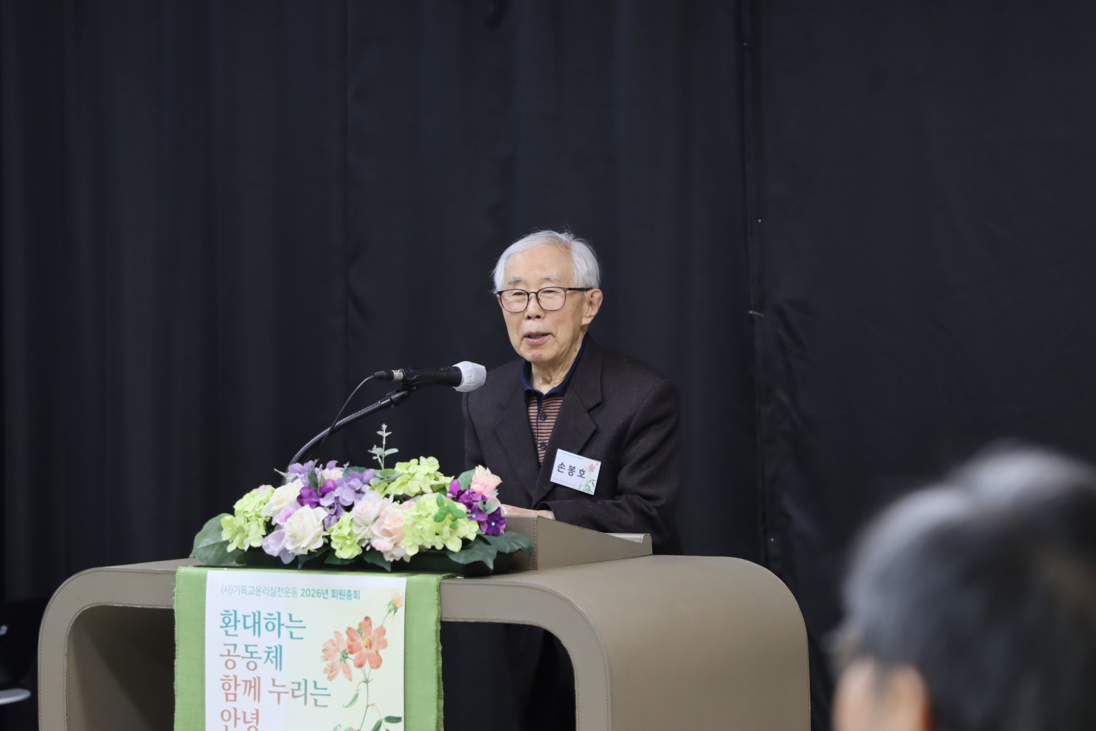 교제의 끝자락에는 손봉호 자문위원장의 격려사가 있었습니다. 손봉호 장로님은 “한국 교회의 명예가 땅에 떨어진 지금이야말로 기윤실의 역할이 더욱 중요하다”고 강조하셨습니다. 특히 “그리스도인의 ‘선한 행실’은 복잡한 것이 아니라, 나의 이익보다 이웃의 이익을 먼저 구하며 타인에게 해를 끼치지 않는 것”이라며, “우리가 세상 사람들이 보기에 ‘멋진 삶’을 살아갈 때 비로소 이방인들도 하나님께 영광을 돌리게 될 것”이라고 당부하셨습니다.