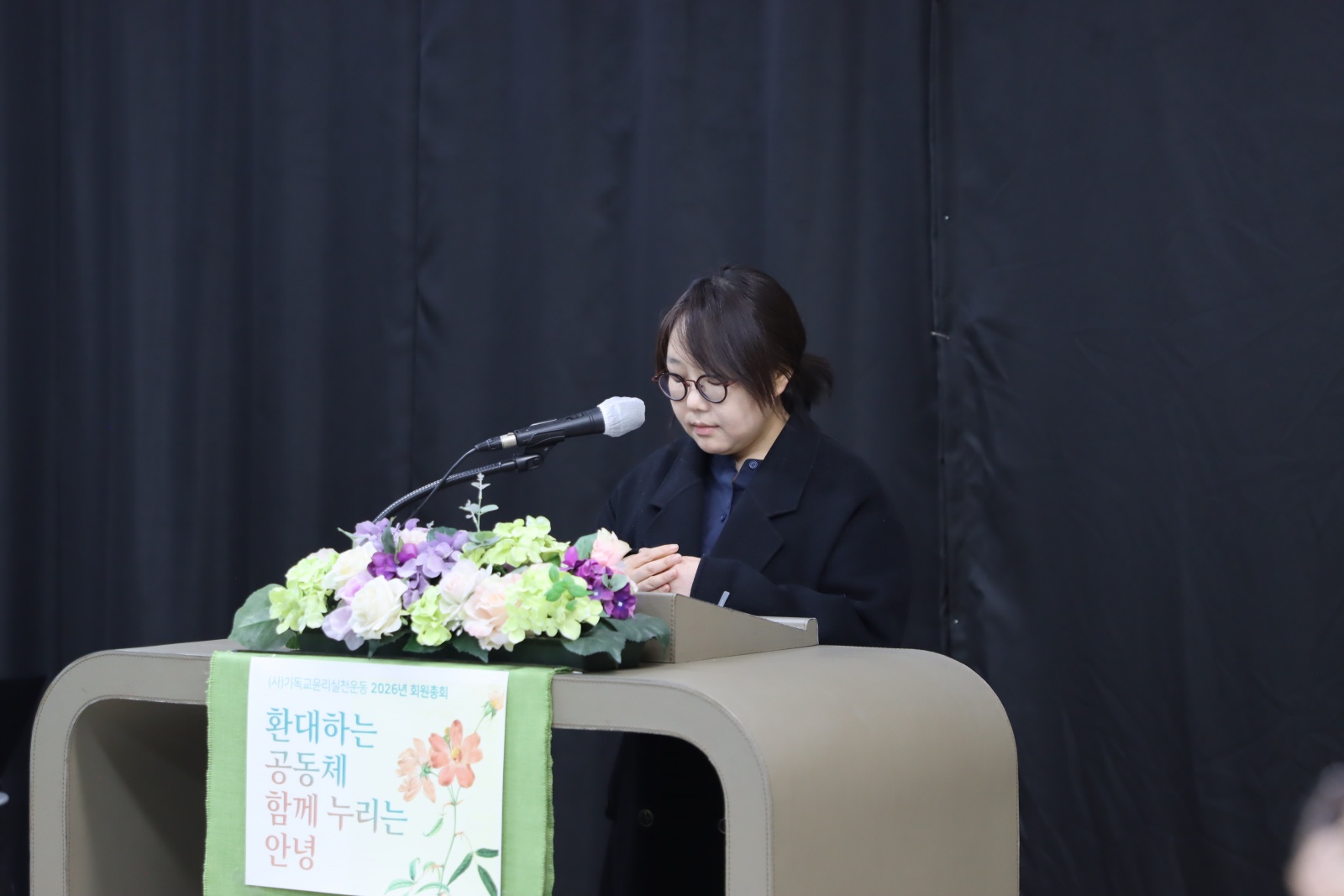 대표기도를 맡은 손민정 상임집행위원은 정치적 혼란과 세상의 아픔, 교회의 어둠의 지난해를 회고하고 이 땅에서 하나님의 시민으로 살아가는 2026년을 소망하는 기도를 하였습니다.