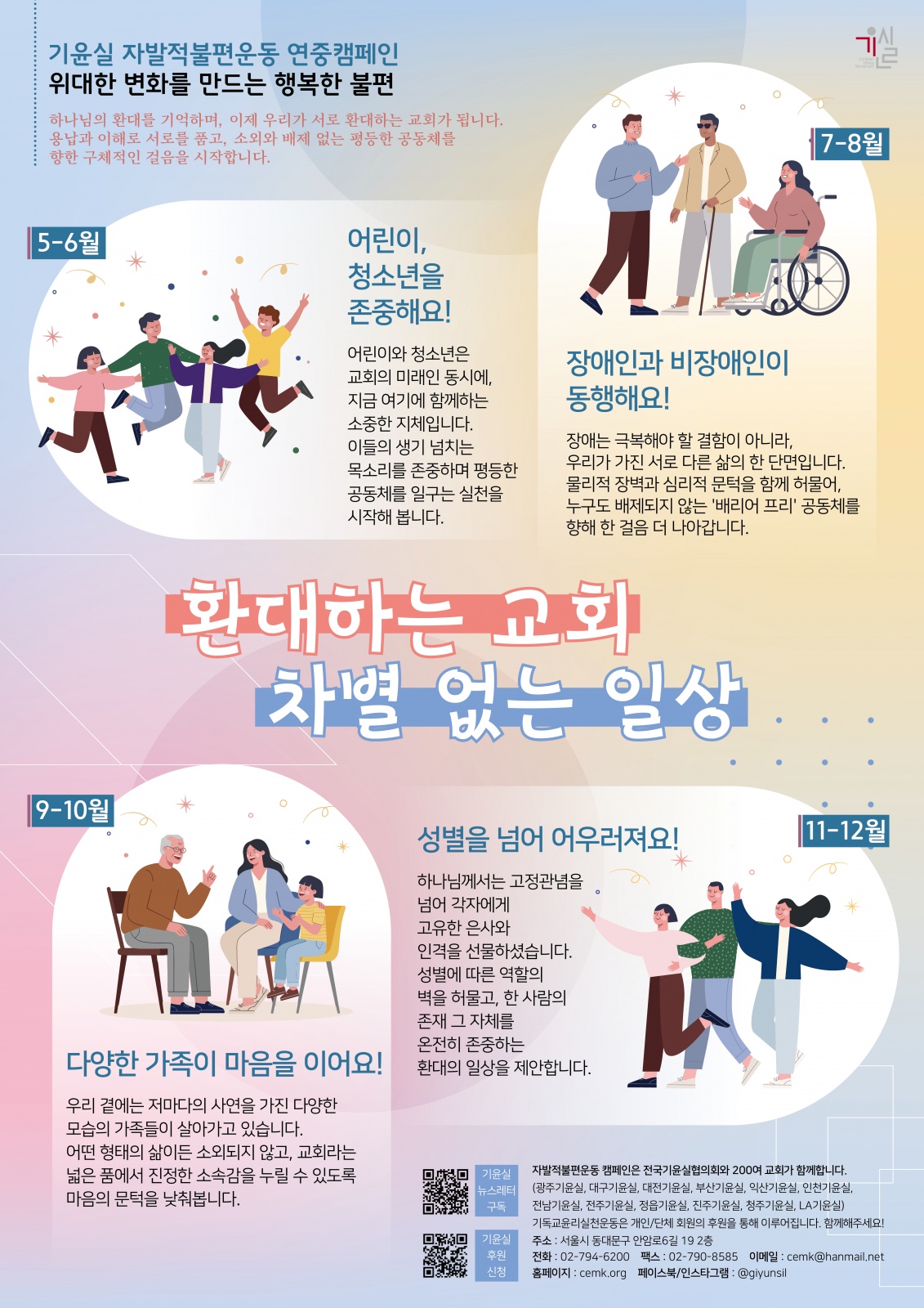 용납과 이해로 서로를 품고, 소외와 배제 없는 평등한 공동체를 향한 구체적인 걸음을 시작합니다.