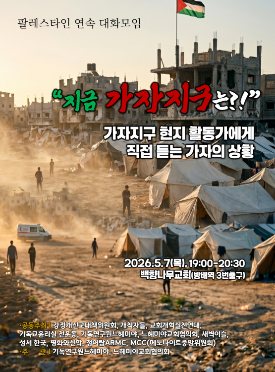[팔레스타인 대화모임] 세 번째 시간에는 실시간으로 가자지구 내 활동가를 직접 연결하여 가자지구의 현재 상황에 대해 듣고 함께 기도하는 시간을 갖고자 합니다.