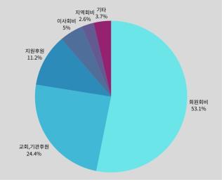 ① 2025년 사업수익의 예산은 3억5천3백만 원, 결산은 4억1천5백여만 원으로 117.8% 달성했습니다. 회원회비의 초과실적은 6~7월 실시한 신규회원 모집 및 기존회원 증액 요청의 성과이고, 교회기관후원금의 실적 미달은그동안 정기후원을 하던 교회 중 15곳이 2025년에 후원을 중단한 것이 요인입니다. 지원후원금은 한국교회 신뢰도여론조사, 청년센터 상담소 등 사업별 모금을 통해 일부 충당하였습니다.
